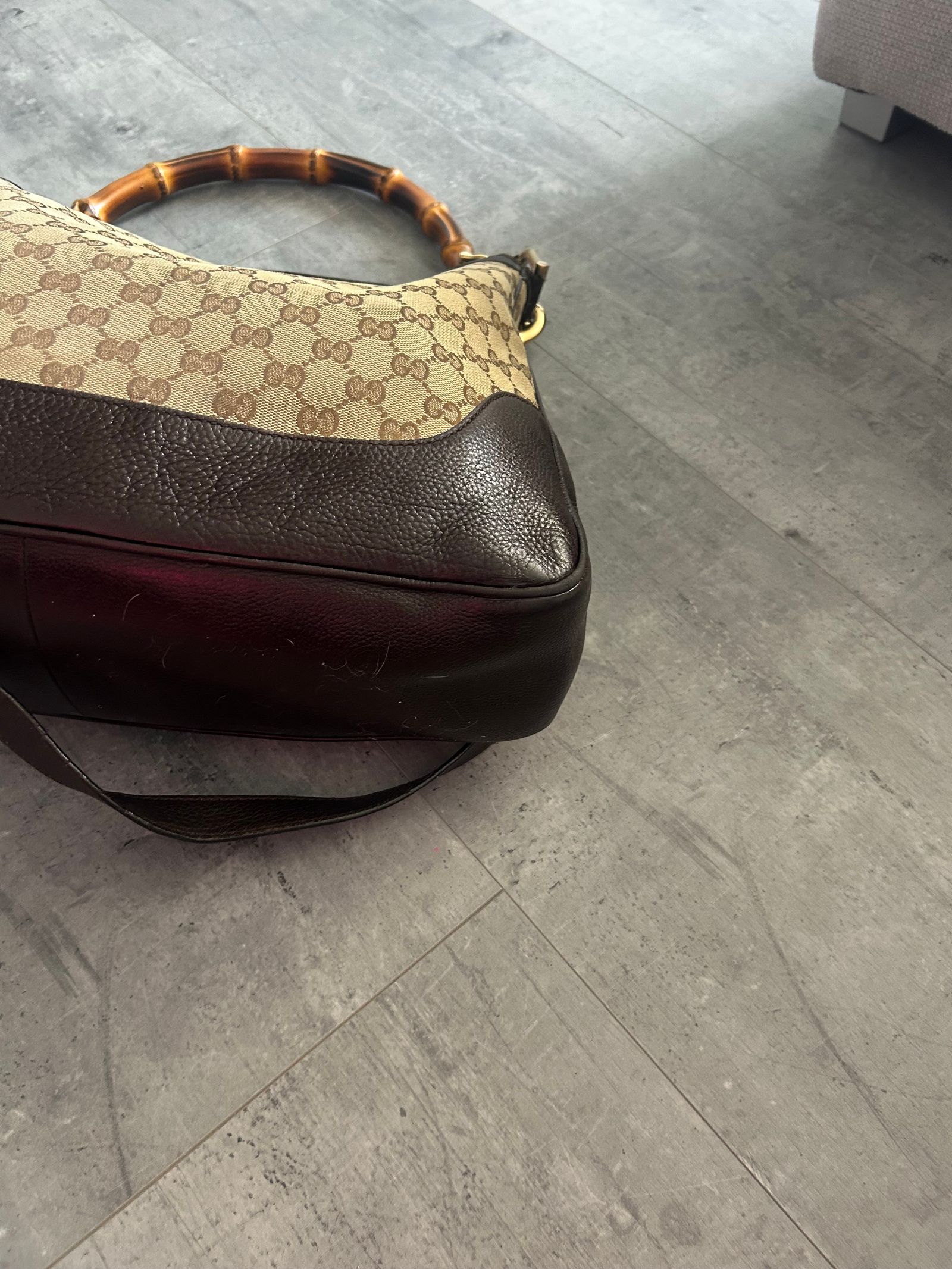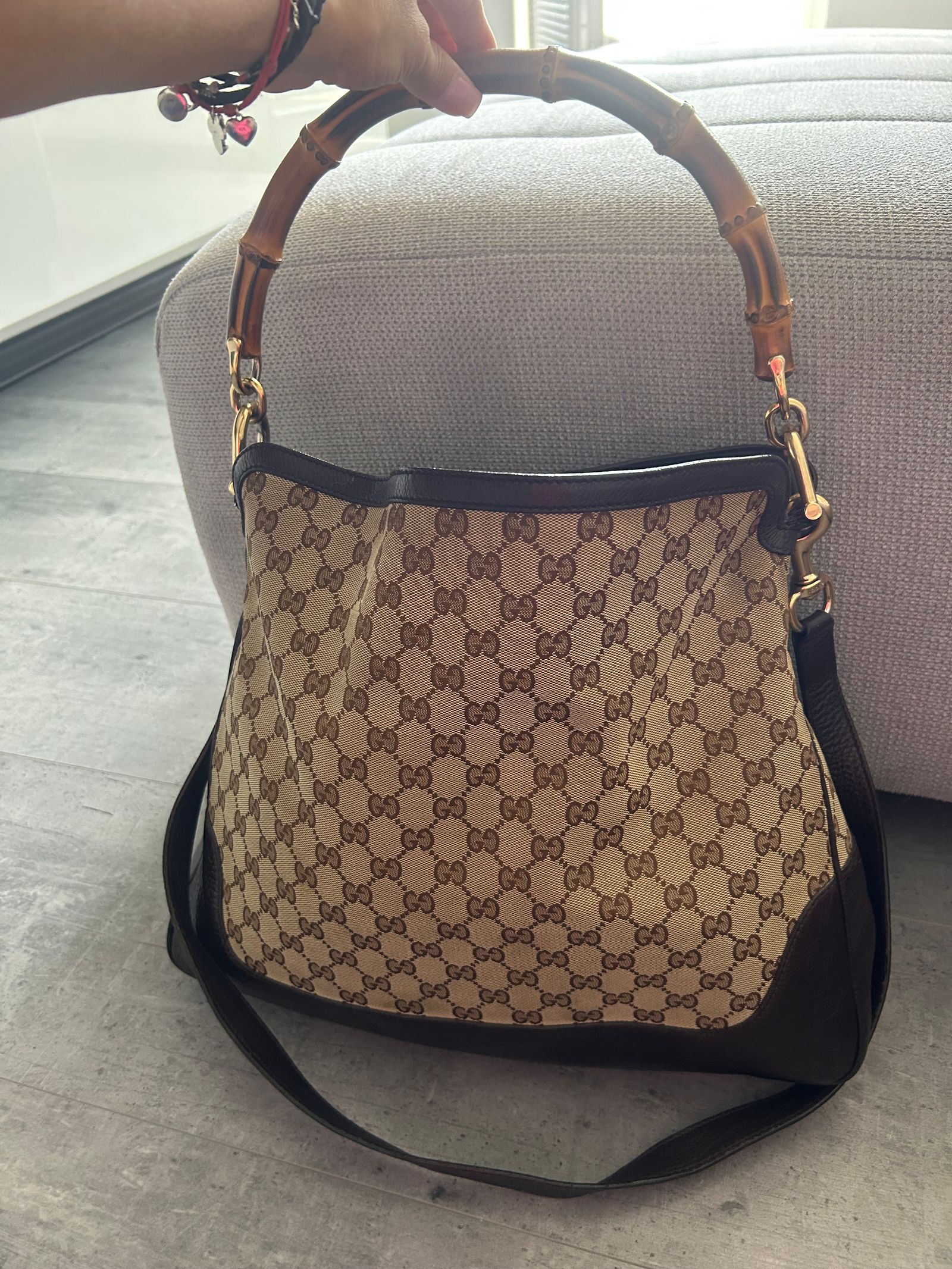 -prodam originalni kabelku Gucci GG Canvas Diana Bamboo Shoulder Bag, ktera byla nosena, ale nema zadne vazne poskozeni, jak je videt na fotografiich,